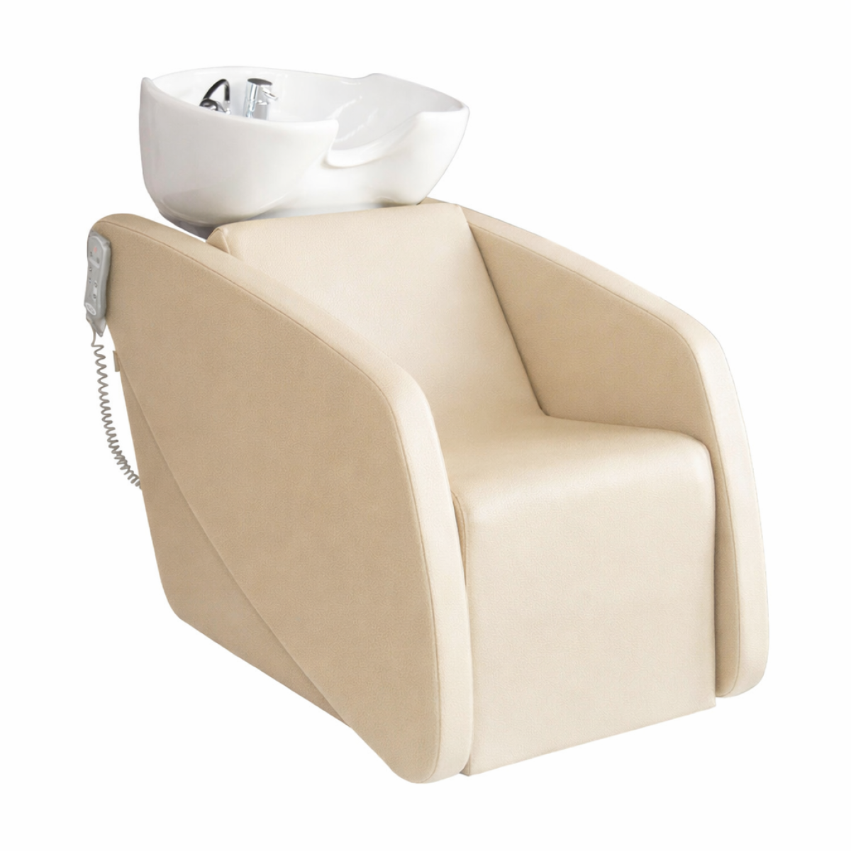 Luxuriöser Waschsessel mit ergonomischer Kippfunktion, weiß oder schwarz, Keramikbecken (inkl. Mischbatterie und Handbrause) Matratze mit synchronisierter ferngesteuerter Verstellung von Rückenlehne, Sitz und Beinauflage für eine vollständige Liegeposition. Erhältlich mit optionalem Shiatsu, Luft, Massage. Klappsitzlehne für einfachen Zugang zur Elektrik. Seitenzugang Sanitär auf Anfrage erhältlich. Klicken Sie unten auf Materialien, um die Stoffauswahl anzuzeigen, und auf Optionen, um andere Konfigurationen anzuzeigen.
