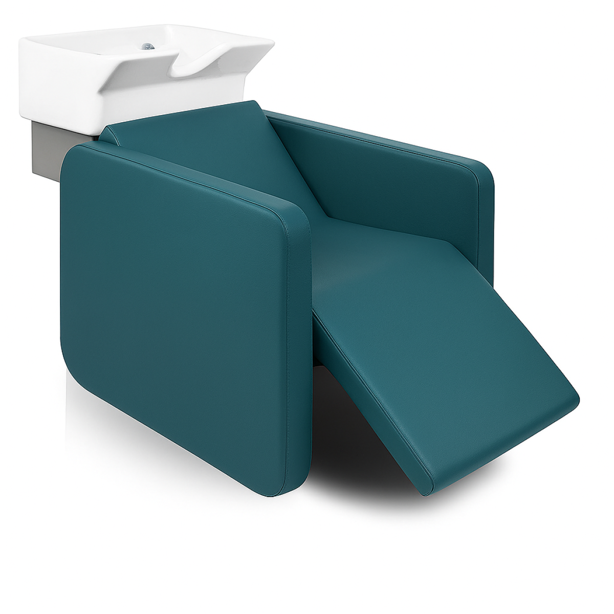 Modernes Waschsessel mit ergonomischer quadratischer Keramikschüssel (Mischer und Handbrause inklusive), erhältlich in Weiß oder Schwarz, mit Siphoid-Ablauf. Modell mit elektrisch verstellbarer Beinstütze per Fernbedienung. Seitlicher Zugang zu den Sanitäranlagen auf Anfrage möglich. Um die Polsteroptionen anzuzeigen, klicken Sie unten auf „Materialien“ oder für andere Modelle auf „Optionen“.