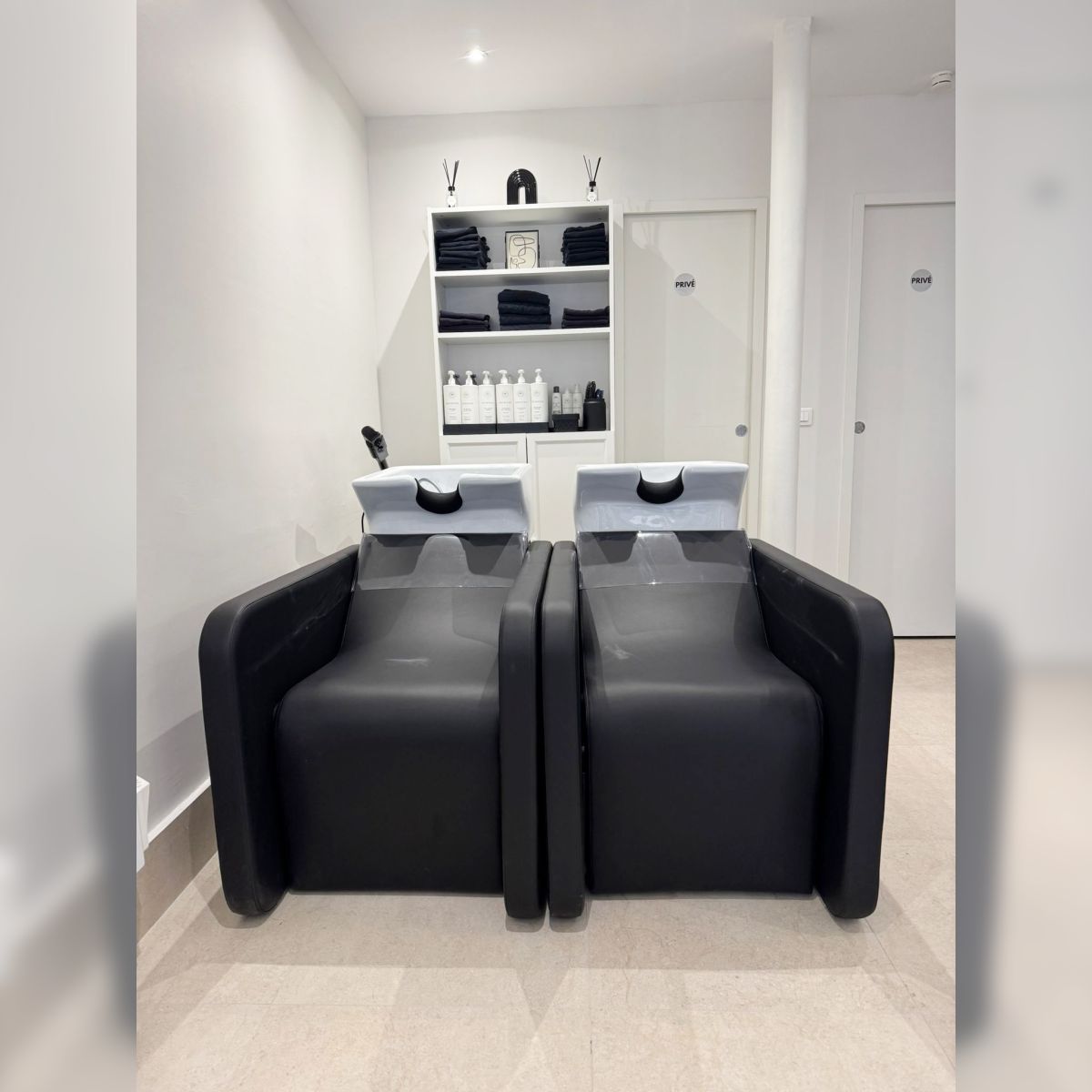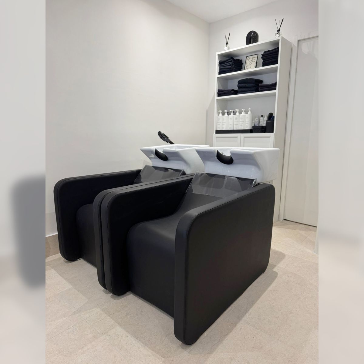 Waschsessel mit ergonomischer quadratischer Keramikschüssel (Mischbatterie und Handbrause im Lieferumfang enthalten), erhältlich in Weiß oder Schwarz, mit Siphoid-Ablauf. Optional auch mit elektrisch verstellbarer Beinauflage oder bei der Shiatsu-Luftmassage immer mit elektrischer Beinauflage erhältlich. Seitlicher Zugang zu den Sanitäranlagen auf Anfrage möglich. Um die Polsteroptionen anzuzeigen, klicken Sie unten auf „Materialien“ oder für andere Modelle auf „Optionen“.