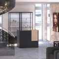 Fini en stratifié noir mat avec un accent en stratifié bois Montréal, il apporte une touche moderne à tout salon. Derrière le bureau, vous trouverez un tiroir verrouillable, trois étagères réglables et cinq compartiments de rangement – parfaits pour garder vos essentiels organisés et en sécurité.